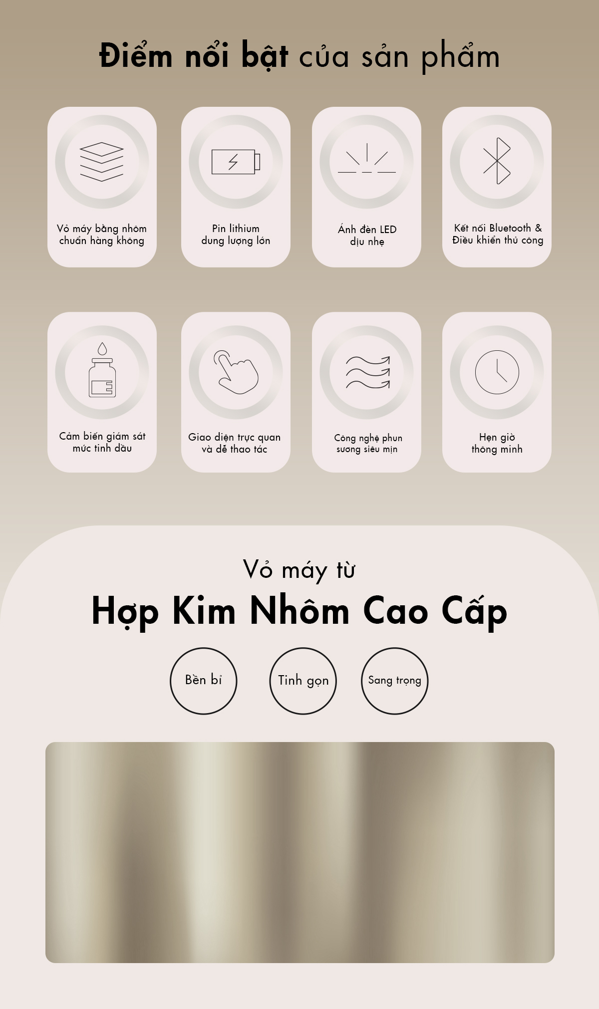 Sản phẩm máy khuếch tán, xông tinh dầu Kodo 100 Premium gồm các bộ phận sau: