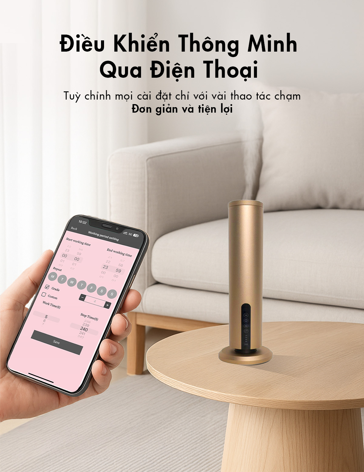– Bộ hẹn giờ có thể được điều chỉnh giữa các chế độ: 1h, 2h, 4h, 8h,Smart, và 24h.