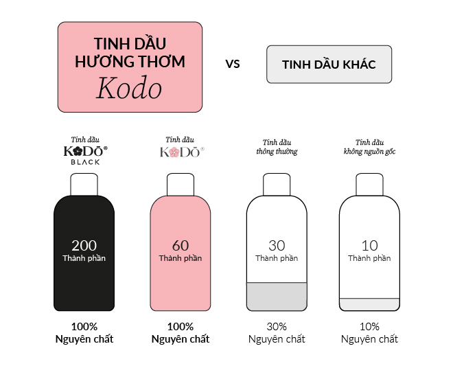 Doanh nghiệp lớn và nhỏ đều tin tưởng vào chất lượng và uy tín của Kodo. Kodo đã xây dựng mối quan hệ đáng tin cậy với nhiều đối tác doanh nghiệp, cung cấp cho họ các loại tinh dầu chất lượng để sử dụng trong các sản phẩm của họ. Đồng thời, Kodo cũng đáp ứng nhu cầu của nhiều khách hàng cá nhân, mang lại cho họ sự hài lòng và tin tưởng vào sản phẩm tinh dầu.